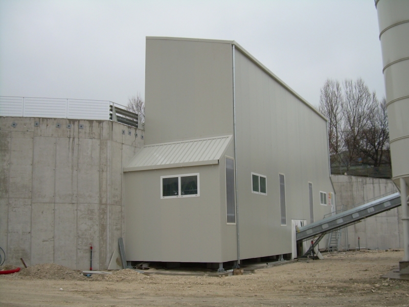 Sistemi di copertura utilizzati per proteggere dalle intemperie gli impianti di produzione del calcestruzzo e i suoi accessori. Sistemi di tamponatura coibentati possono essere istallati per climi estremi.