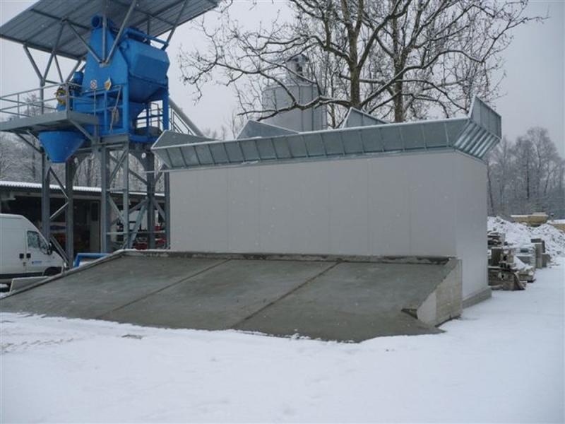 Pannelli fonoassorbenti per la riduzione delle emissioni sonore all’esterno dell’impianto di produzione del calcestruzzo.