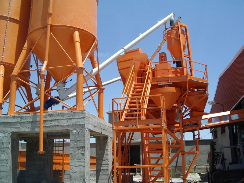 Mescolatori planetari o a doppio asse orizzontale con possibilità di approvvigionamento inerti tramite nastro o con skip, per produzioni di calcestruzzo da semiasciutto ad autolivellante (S.C.C.) – Resa mescolatori da 0,25 a 3 m³