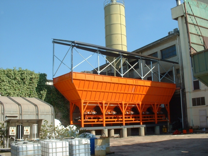 Modularità nella scelta del numero e della capacità delle tramogge di stoccaggio degli inerti da 2 a 6 o più scomparti; capacità da 20 a 360 m³ totali