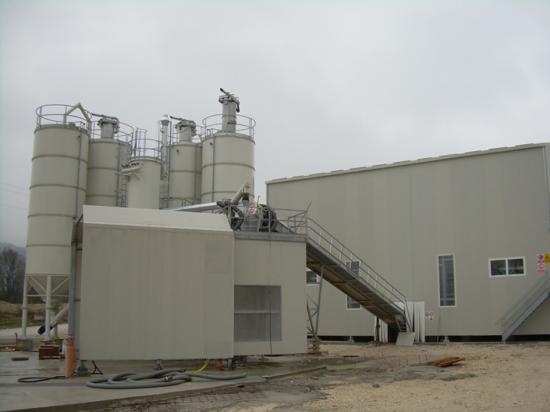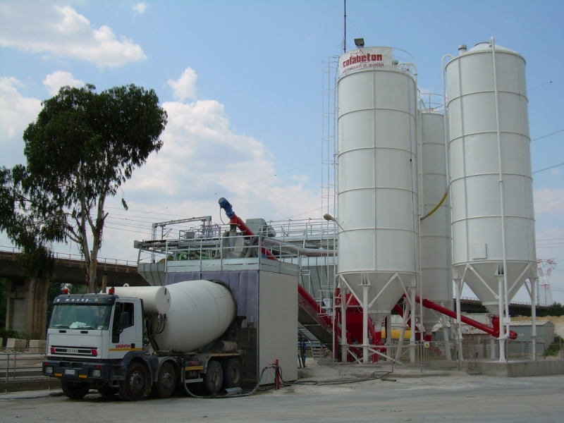 Impianti per il carico a secco delle autobetoniere con singolo o doppio punto di carico e singola o doppia bilancia inerti.