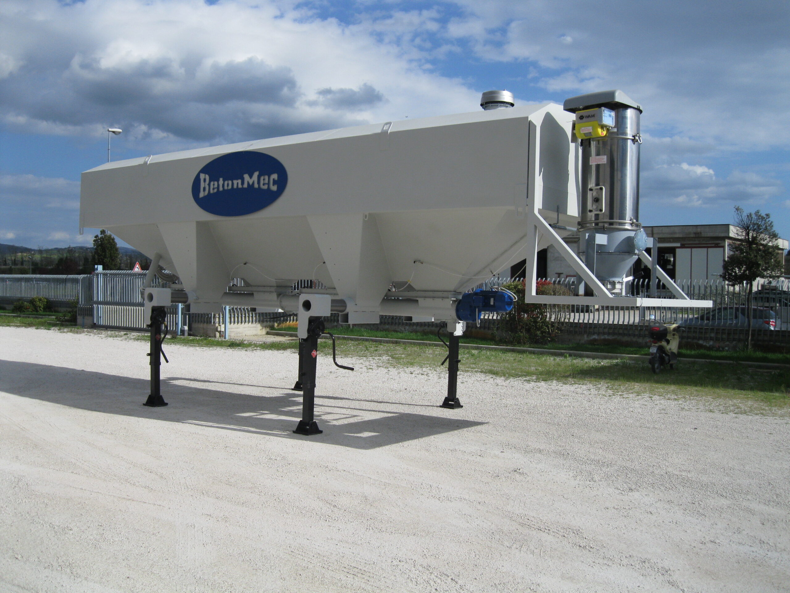 Inoltre per completare i nostri impianti mobili è stato sviluppato un silo orizzontale che non necessita di gru per diventare operativo ed è anche trasportabile su rimorchio.
